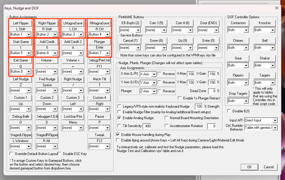 I have drawn boxes around the keys you need to configure. You just select the Button for each key as shown above. If you followed the wiring ordering I suggested earlier it’s basically 1, 2, 3, 4 ….